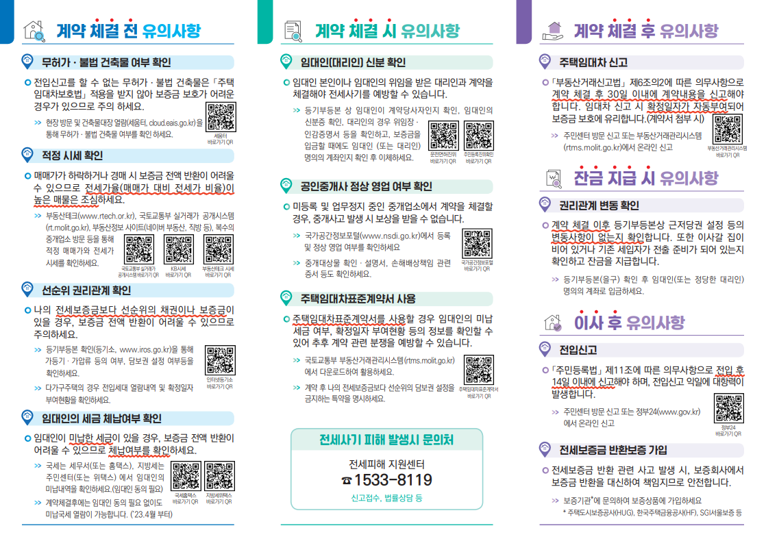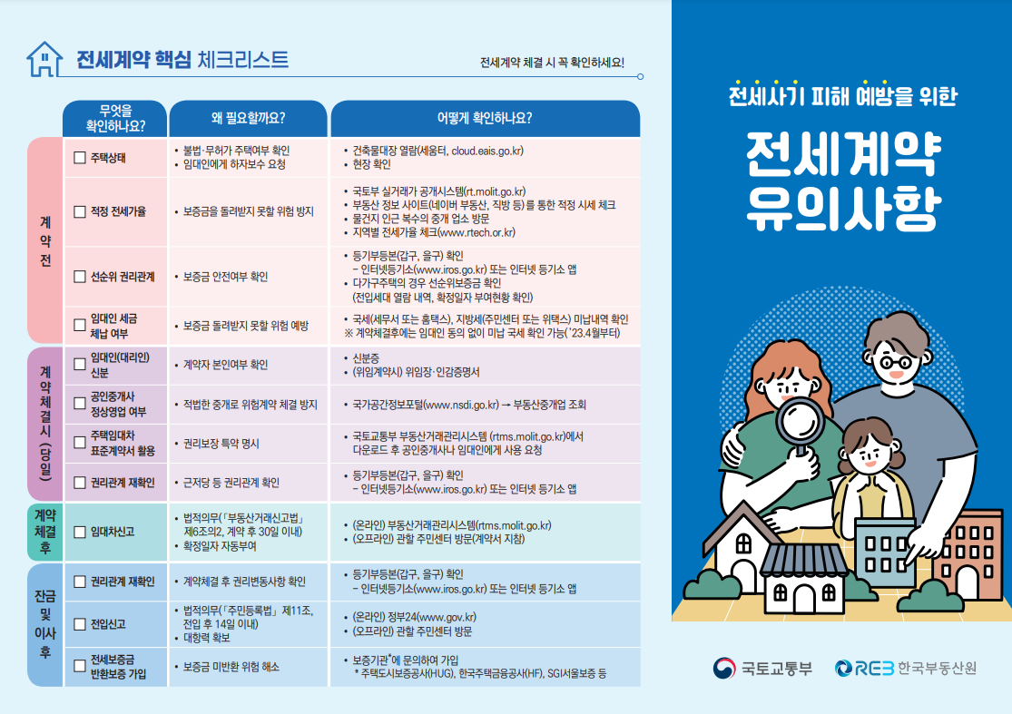 2. 전세계약서 작성 시에는 임대인 신분(신분증,본인여부 확인), 공인중개사 정상영업 여부, 해당 주택에 근저당 또는 거주 임차인이 있는지 권리관계 재확인이 필요합니다.