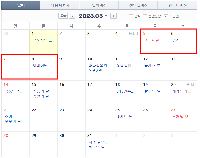 대통령실과 기획재정부는 5월 8일 어버이날을 임시공휴일로 지정하는 방안을 검통했던것으로 전해졌지만 안타깝게도 정부는 어버이날 임시공휴일 지정 카드를 회수한것으로 전해지고 있습니다.