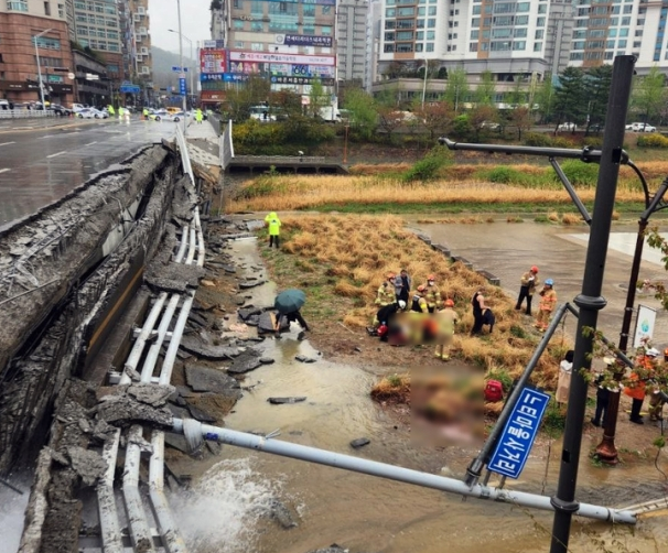 오늘 오전 9시 45분께 성남 분당구 정자동에서 탄천을 가로지르는 정자교의 한쪽 보행로가 무너지는 사고가 발생했습니다. 이 사고로 정자역으로 향하던 보행자 1명이 심정지 상태로 병원으로 했으나 숨지고, 남성 1명이 허리 등을 다쳐 병원에서 치료를 받고 있습니다. 이들은 정자교 보행로를 걷던 중 구조물과 함께 5m 아래인 탄천으로 추락한 것으로 확인되었습니다.